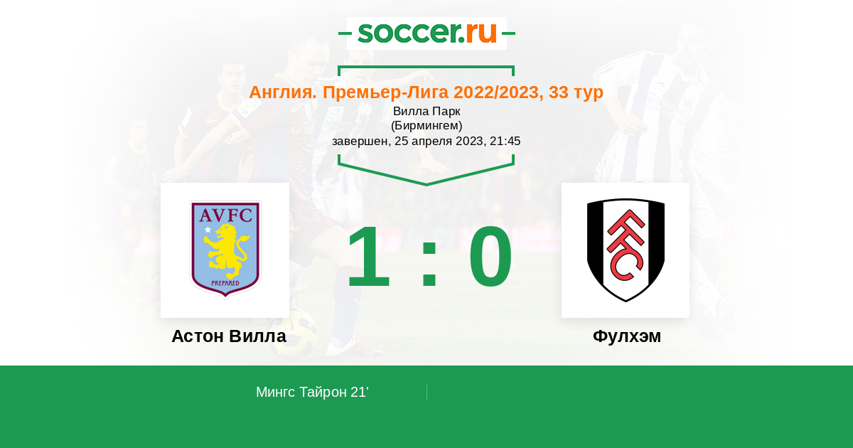 Астон Вилла - Фулхэм: обзор матча 25 апреля 2023
