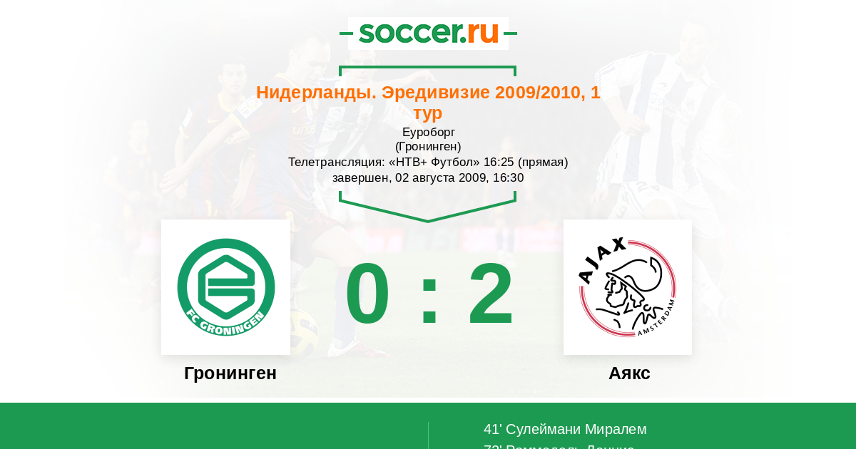 Гронинген - Аякс: обзор матча 2 августа 2009