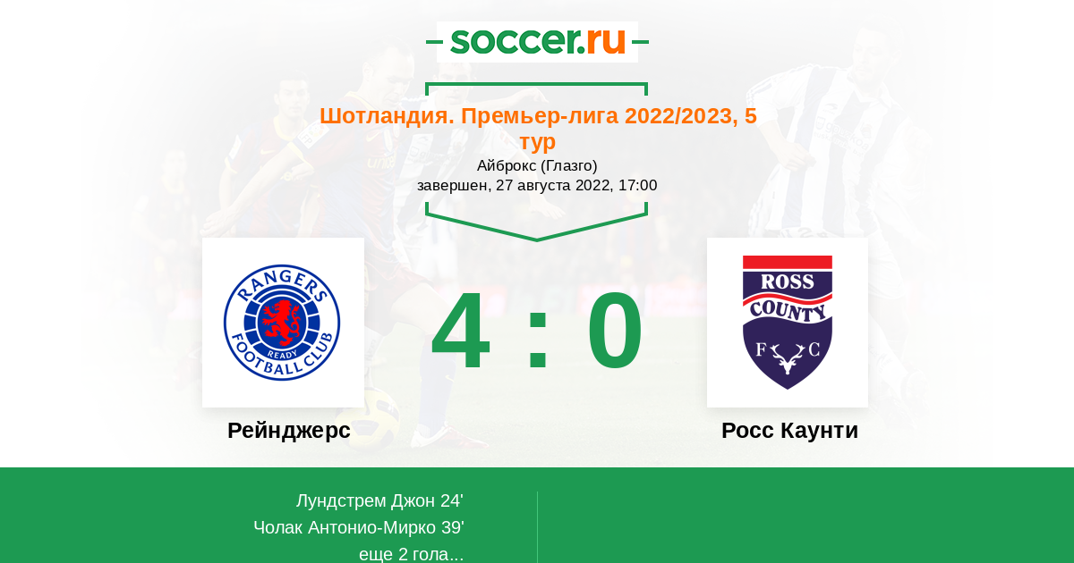Рейнджерс - Росс Каунти: обзор матча 27 августа 2022