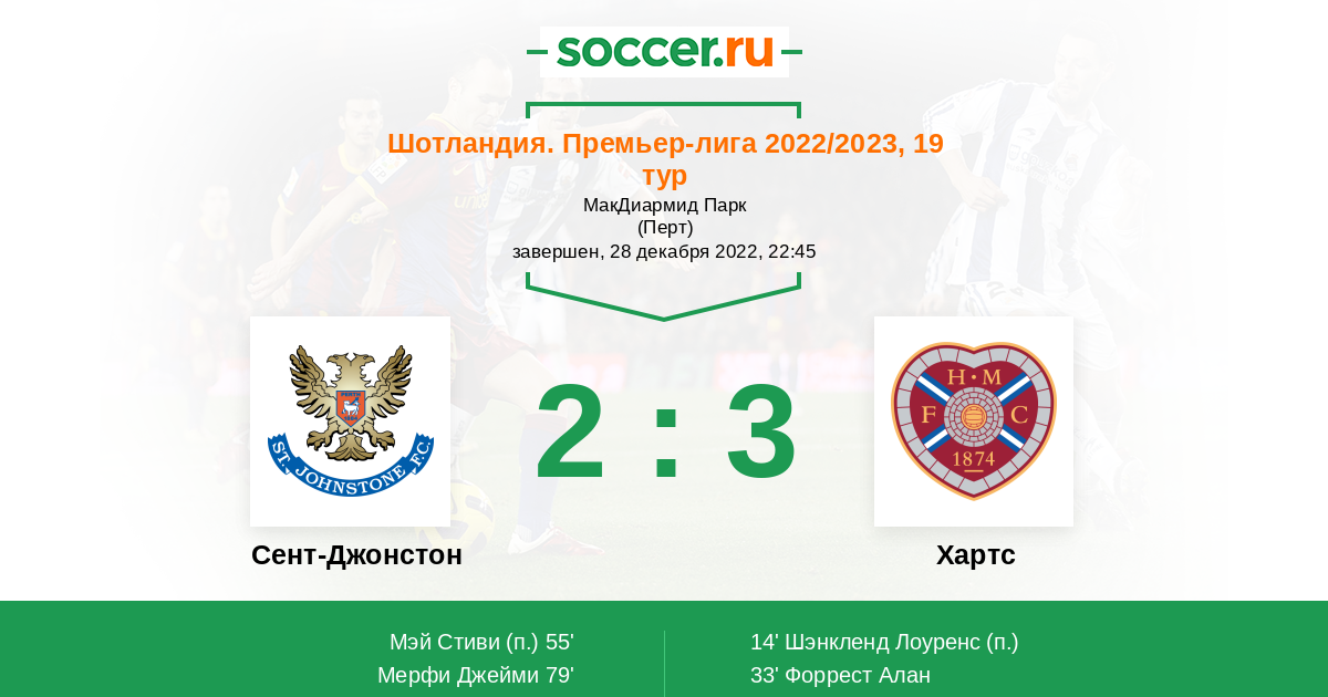Сент-Джонстон - Хартс: обзор матча 28 декабря 2022