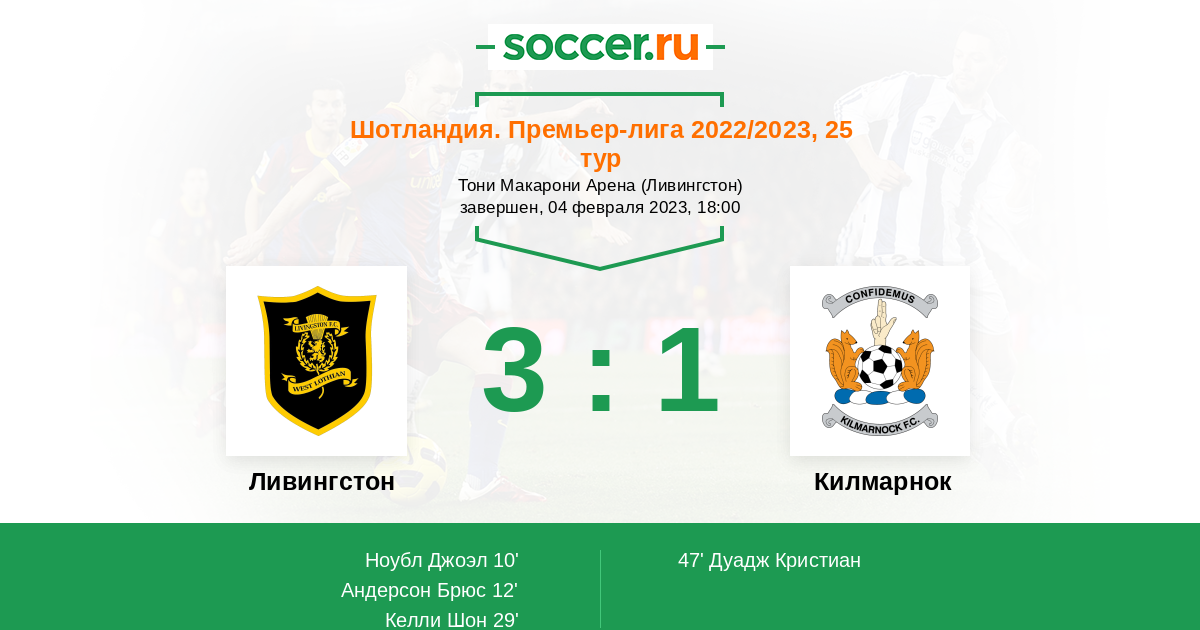 Ливингстон - Килмарнок: обзор матча 4 февраля 2023