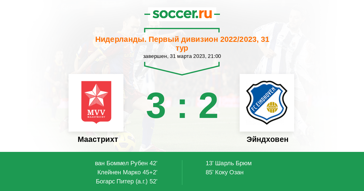 Маастрихт - Эйндховен: обзор матча 31 марта 2023