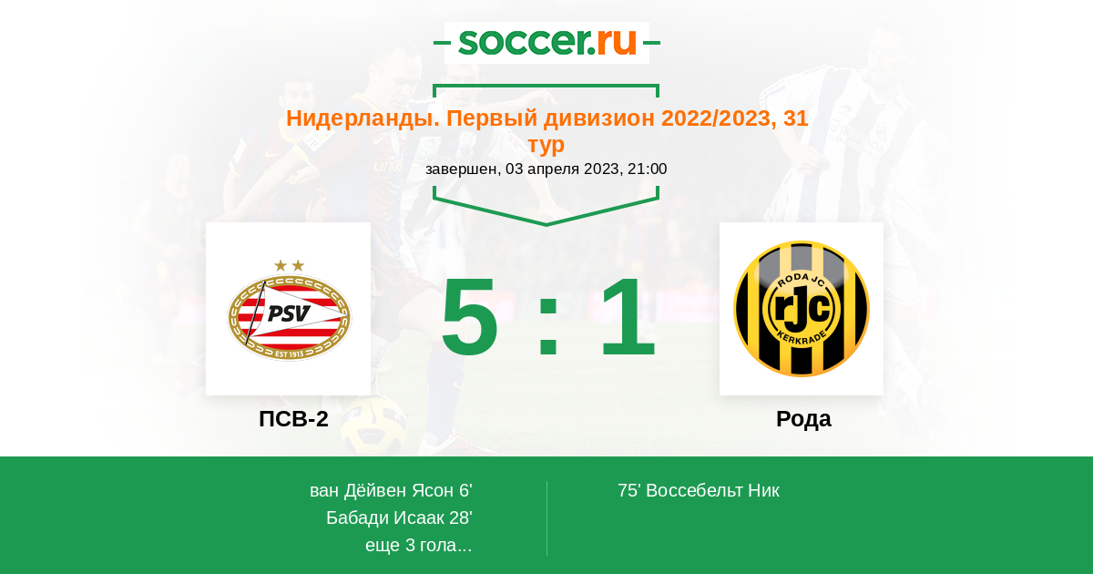 ПСВ-2 - Рода: обзор матча 3 апреля 2023