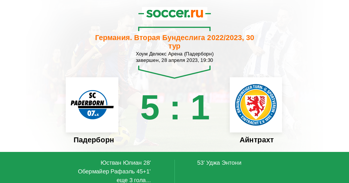 Падерборн - Айнтрахт: обзор матча 28 апреля 2023