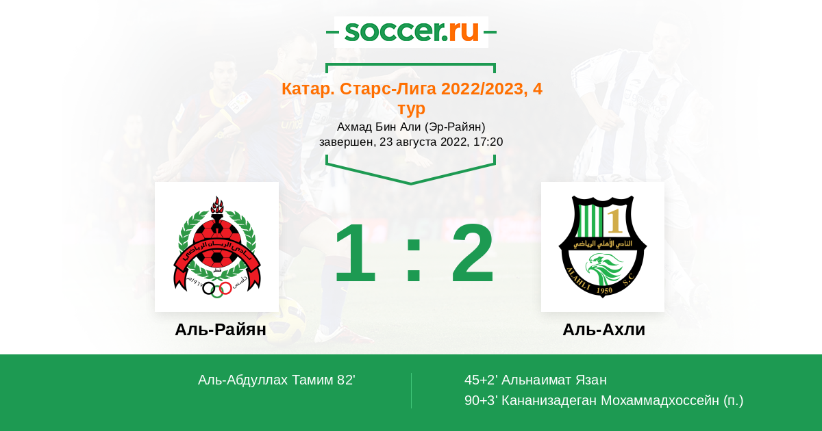 Аль-Райян - Аль-Ахли: обзор матча 23 августа 2022