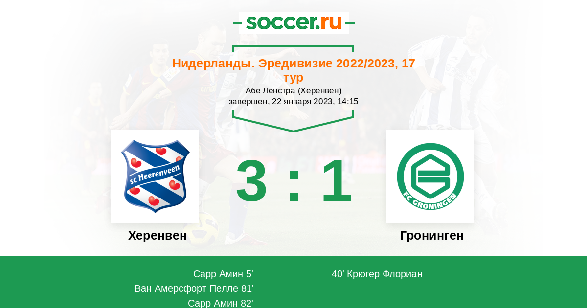 Херенвен - Гронинген: обзор матча 22 января 2023