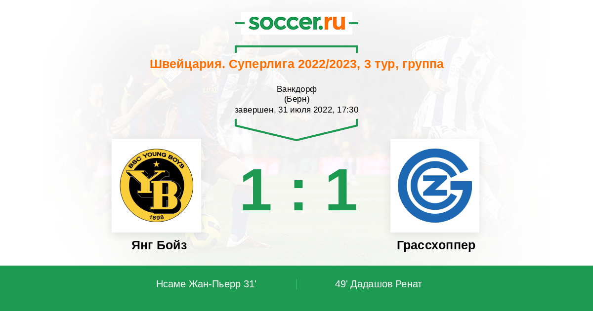 Янг Бойз - Грассхоппер: обзор матча 31 июля 2022