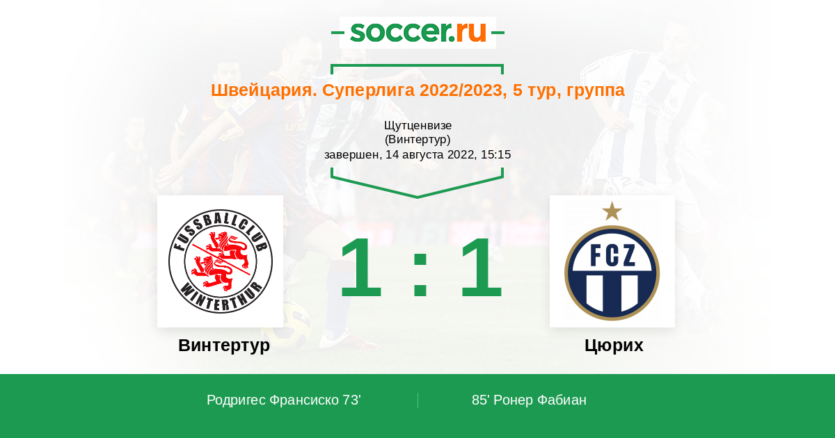Винтертур - Цюрих: обзор матча 14 августа 2022
