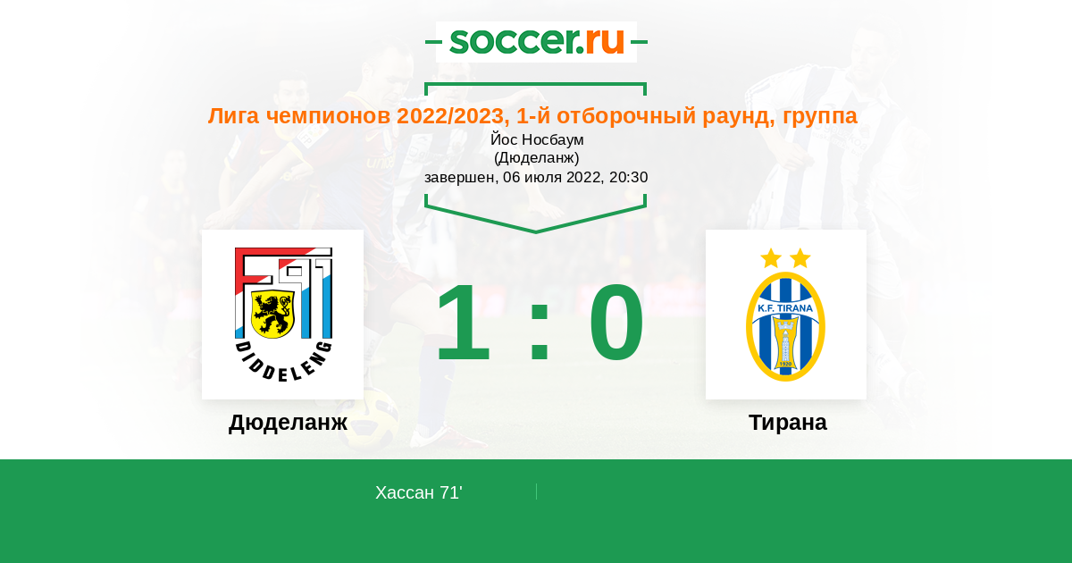 Дюделанж - Тирана: обзор матча 6 июля 2022