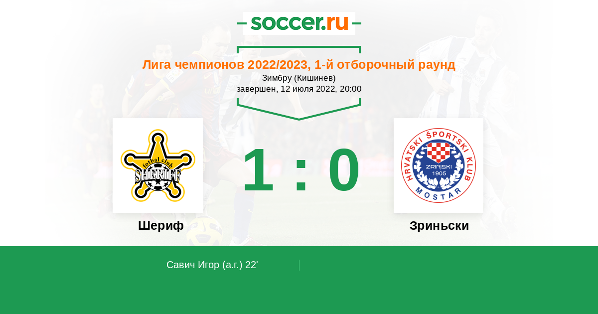Шериф - Зриньски: обзор матча 12 июля 2022