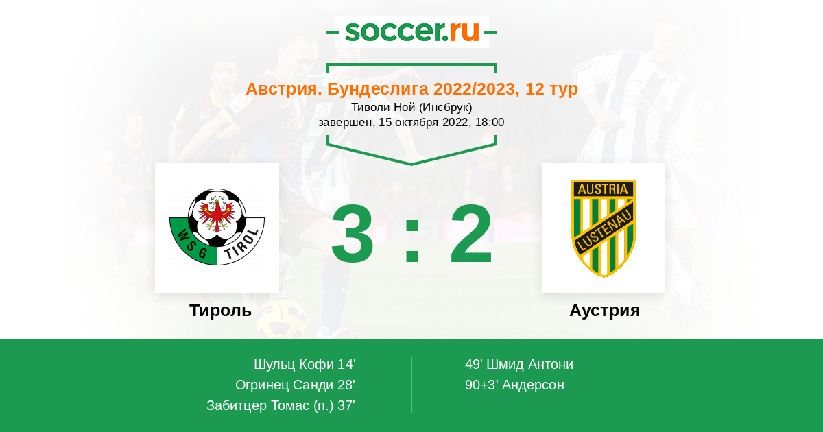 Тироль - Аустрия: обзор матча 15 октября 2022