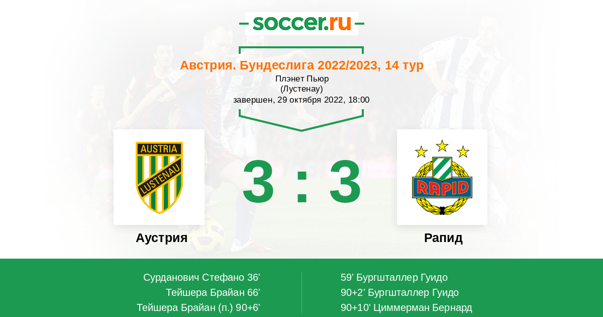 Аустрия - Рапид: обзор матча 29 октября 2022