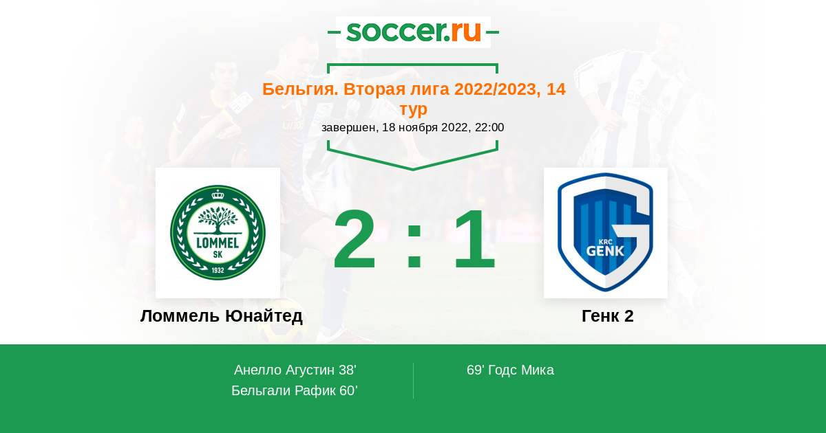 Ломмель Юнайтед - Генк 2: обзор матча 18 ноября 2022