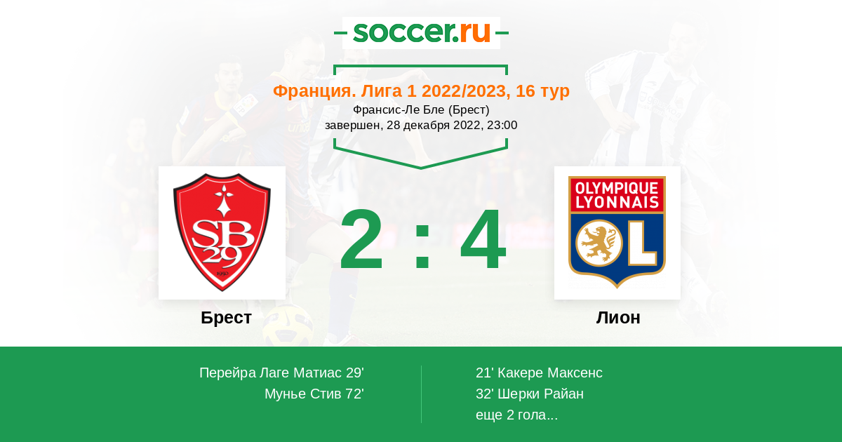 Брест - Лион: обзор матча 28 декабря 2022