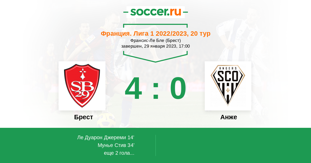 Брест - Анже: обзор матча 29 января 2023