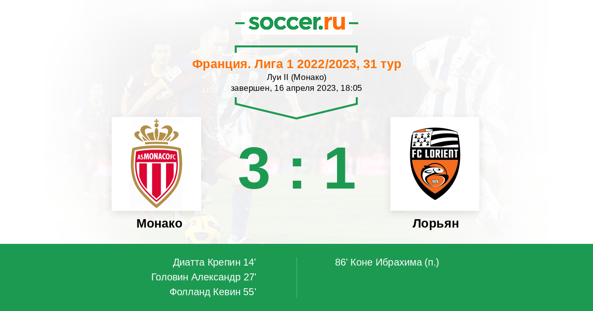 Монако - Лорьян: обзор матча 16 апреля 2023