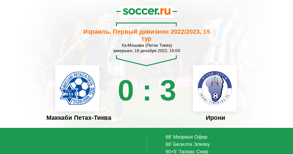 Маккаби Петах-Тиква - Ирони: обзор матча 16 декабря 2022