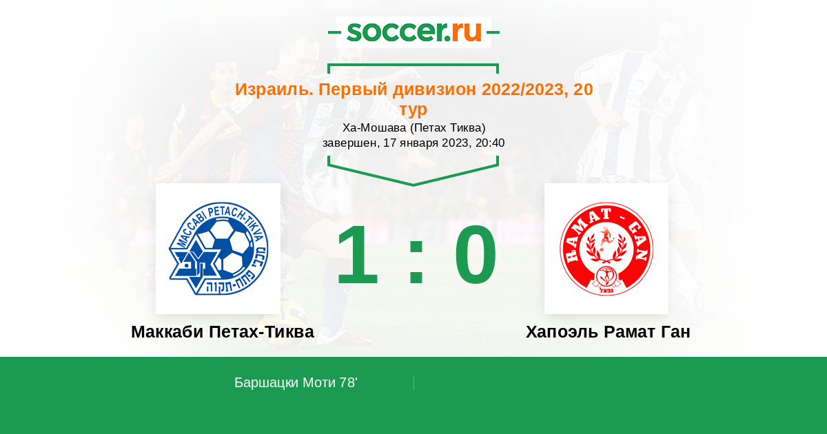 Маккаби Петах-Тиква - Хапоэль Рамат Ган: обзор матча 17 января 2023