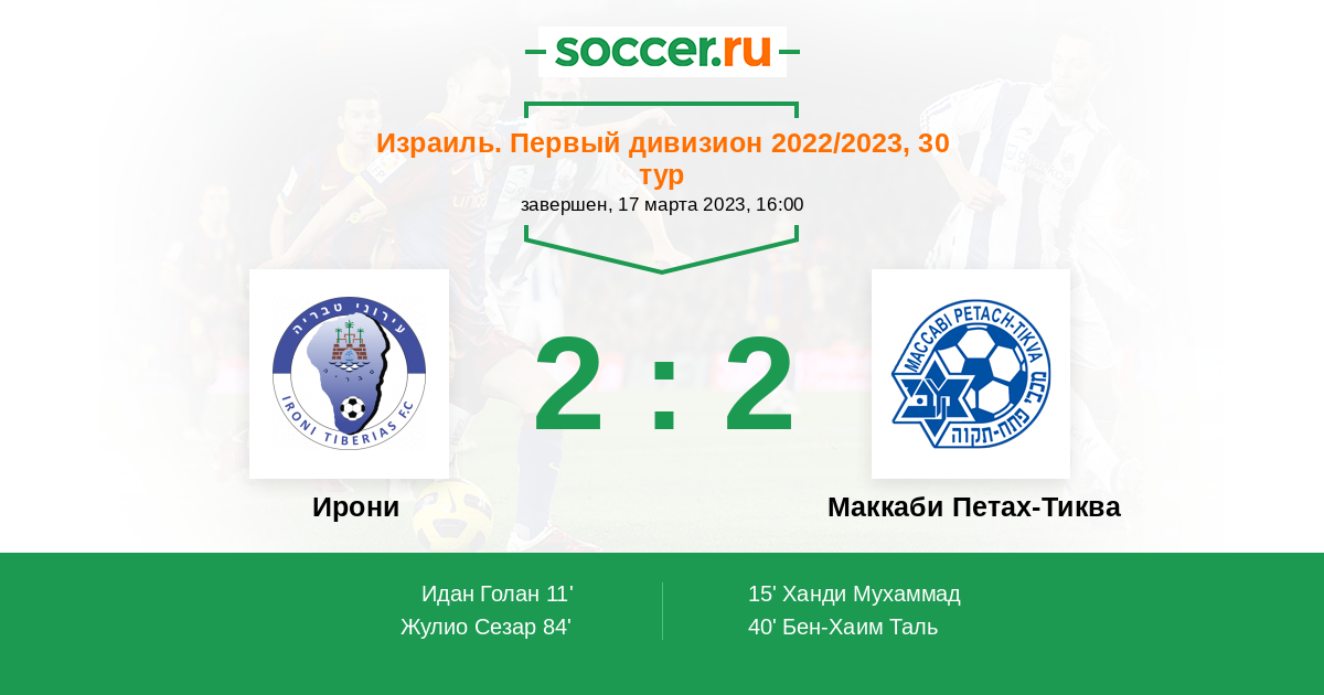 Ирони - Маккаби Петах-Тиква: обзор матча 17 марта 2023
