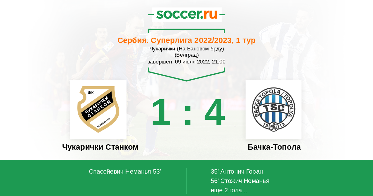 Чукарички Станком - Бачка-Топола: обзор матча 9 июля 2022