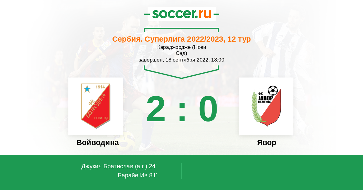 Войводина - Явор: обзор матча 18 сентября 2022