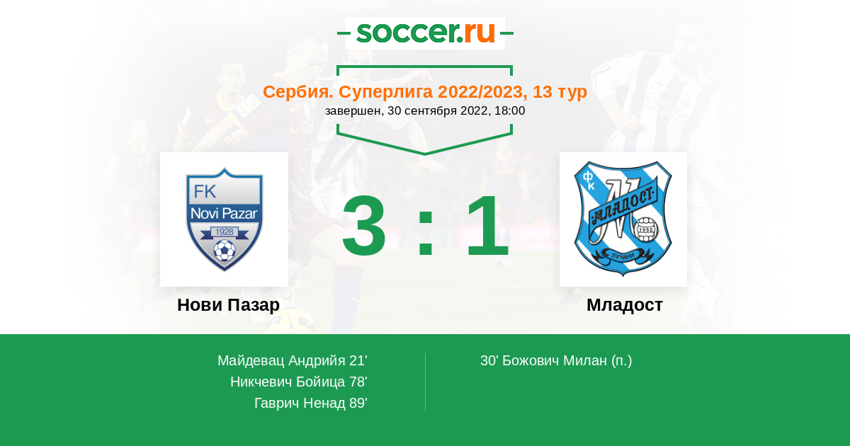 Нови Пазар - Младост: обзор матча 30 сентября 2022