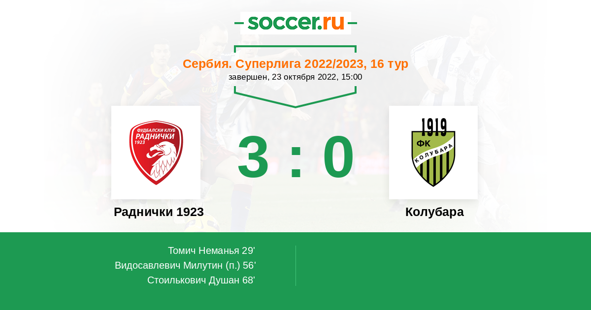 Раднички 1923 - Колубара: обзор матча 23 октября 2022