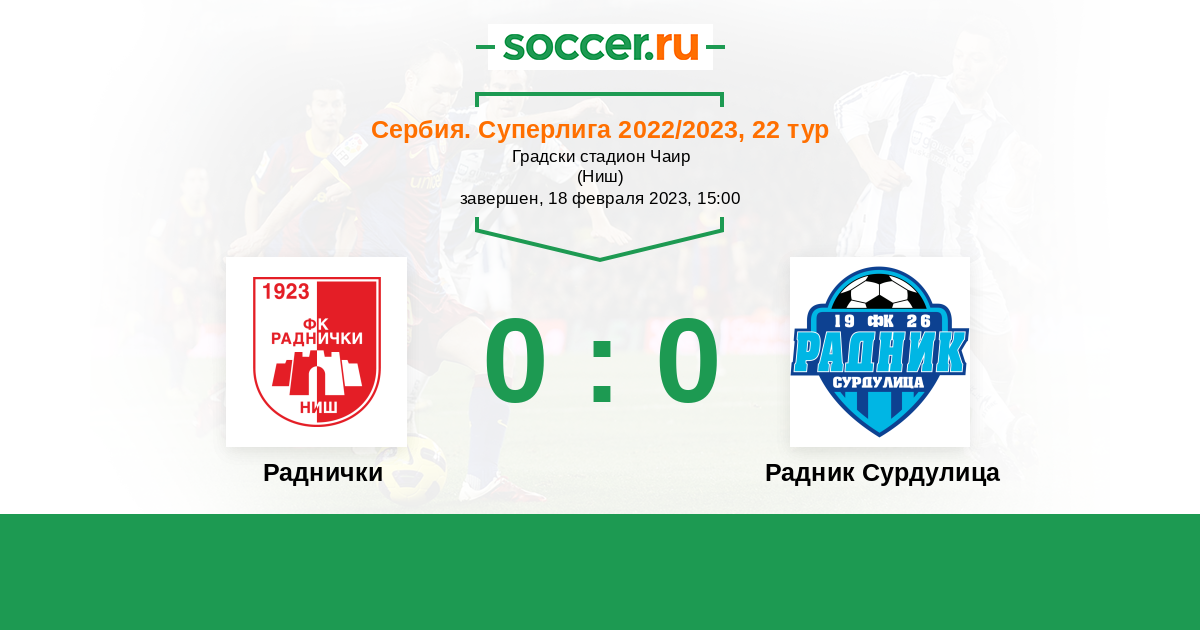 Раднички - Радник Сурдулица: обзор матча 18 февраля 2023