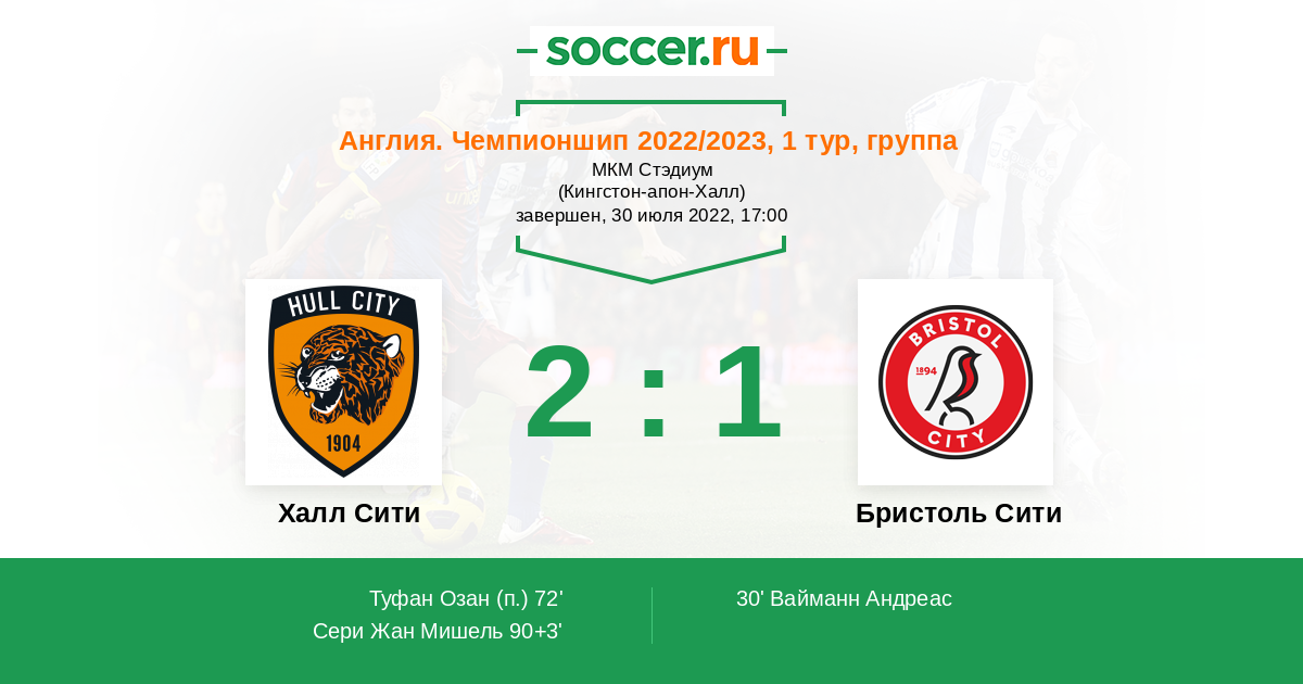 Халл Сити - Бристоль Сити: обзор матча 30 июля 2022