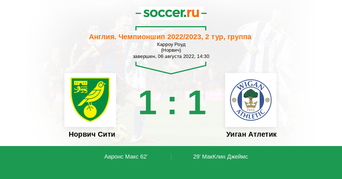 Норвич Сити - Уиган Атлетик: обзор матча 6 августа 2022