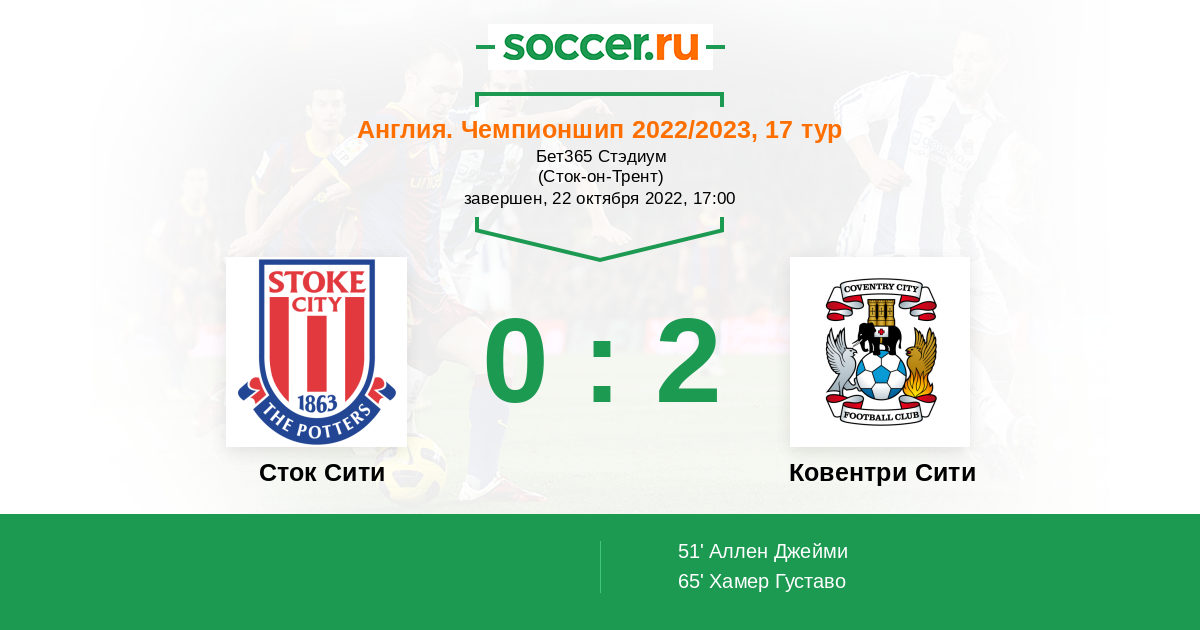 Сток Сити - Ковентри Сити: обзор матча 22 октября 2022