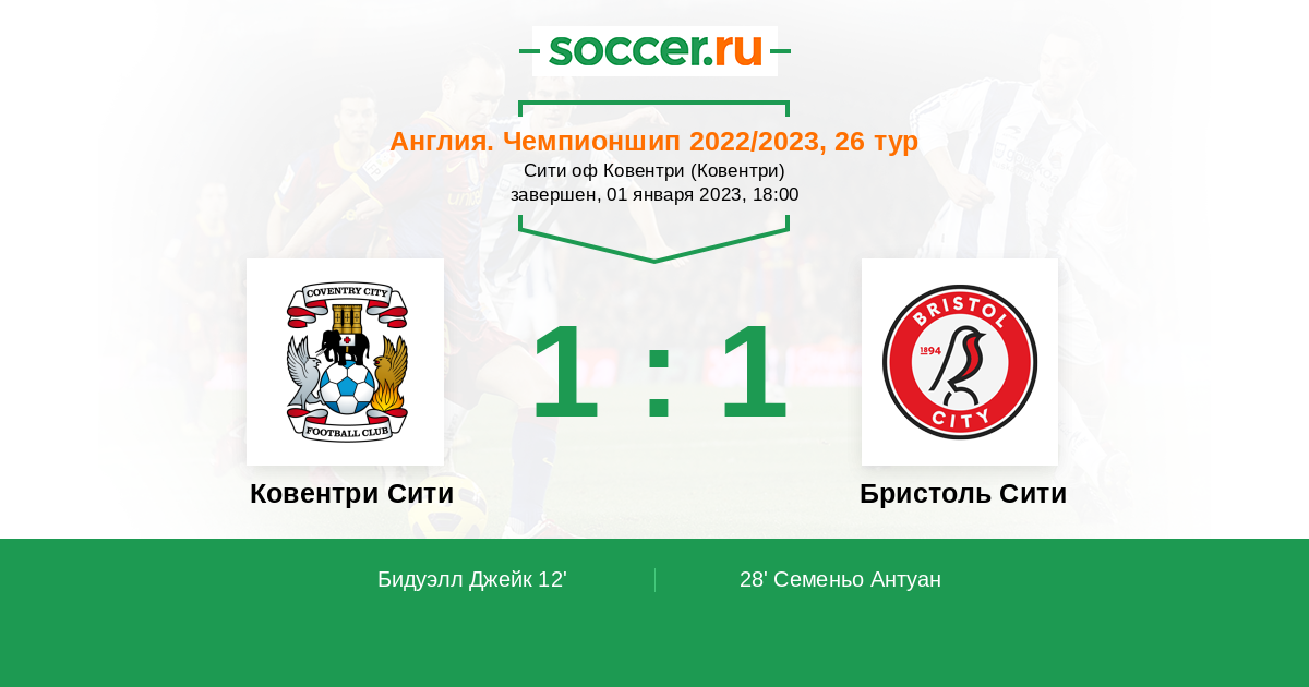 Ковентри Сити - Бристоль Сити: обзор матча 1 января 2023