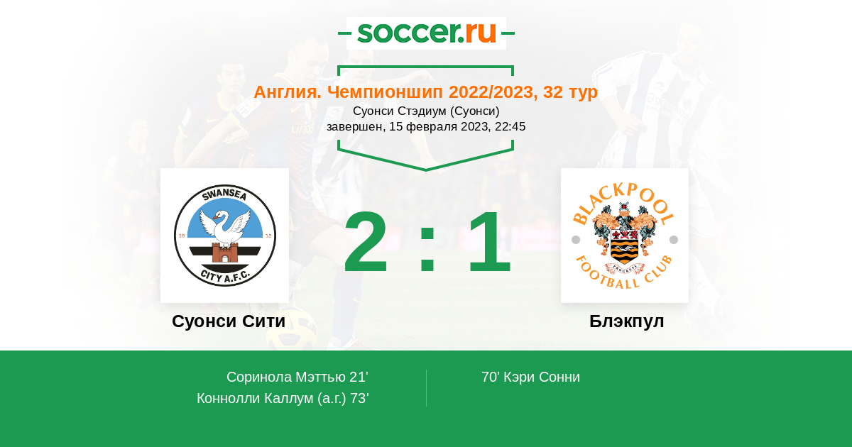 Суонси Сити - Блэкпул: обзор матча 15 февраля 2023
