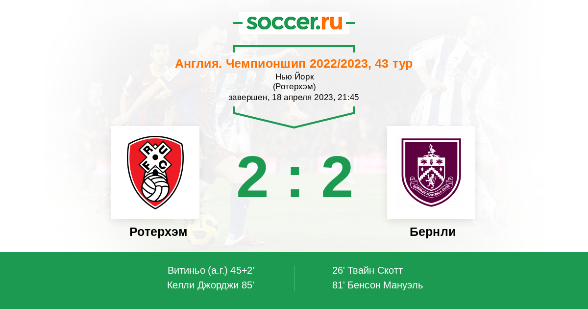 Ротерхэм - Бернли: обзор матча 18 апреля 2023