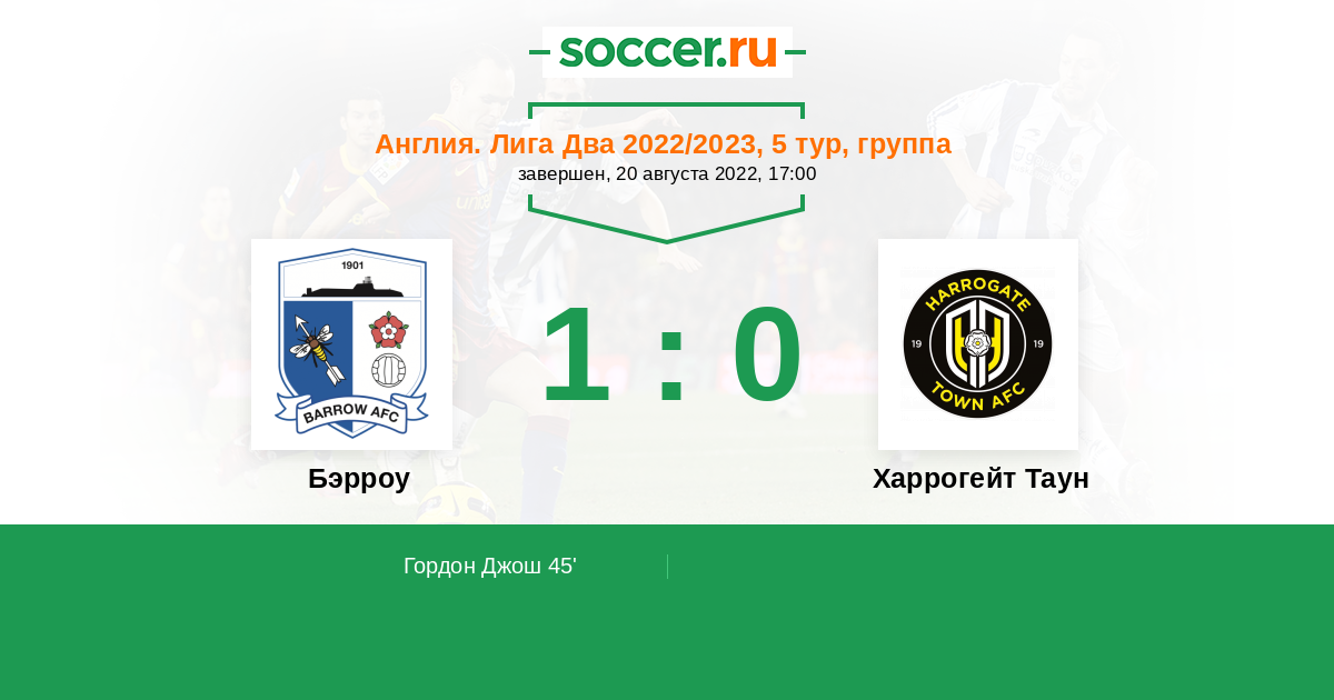 Бэрроу - Харрогейт Таун: обзор матча 20 августа 2022