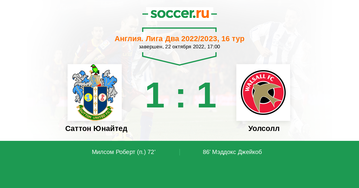 Саттон Юнайтед - Уолсолл: обзор матча 22 октября 2022