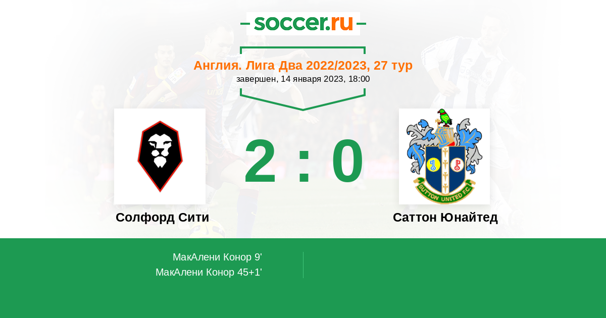 Солфорд Сити - Саттон Юнайтед: обзор матча 14 января 2023