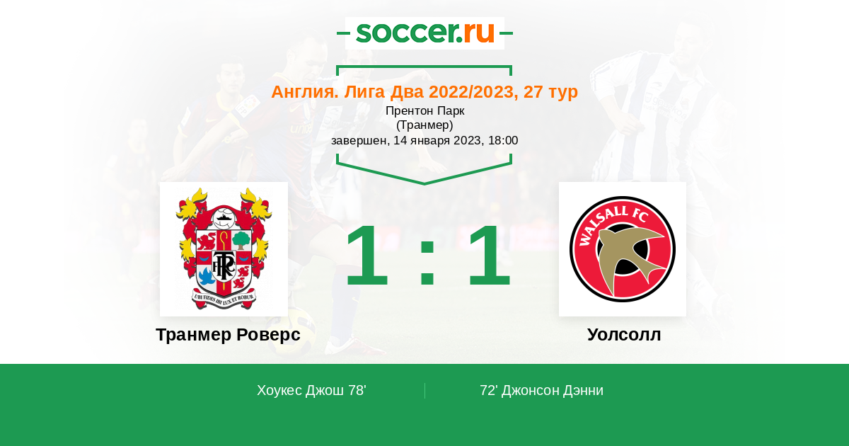 Транмер Роверс - Уолсолл: обзор матча 14 января 2023