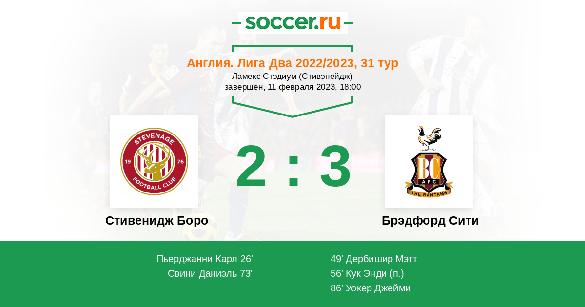 Стивенидж Боро - Брэдфорд Сити: обзор матча 11 февраля 2023