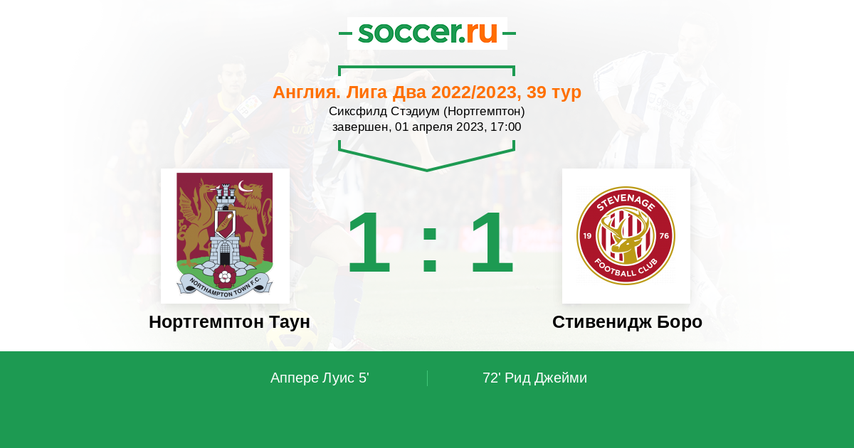 Нортгемптон Таун - Стивенидж Боро: обзор матча 1 апреля 2023
