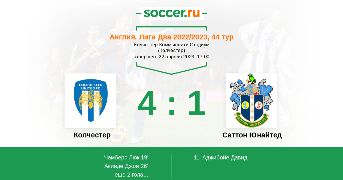 Колчестер - Саттон Юнайтед: обзор матча 22 апреля 2023