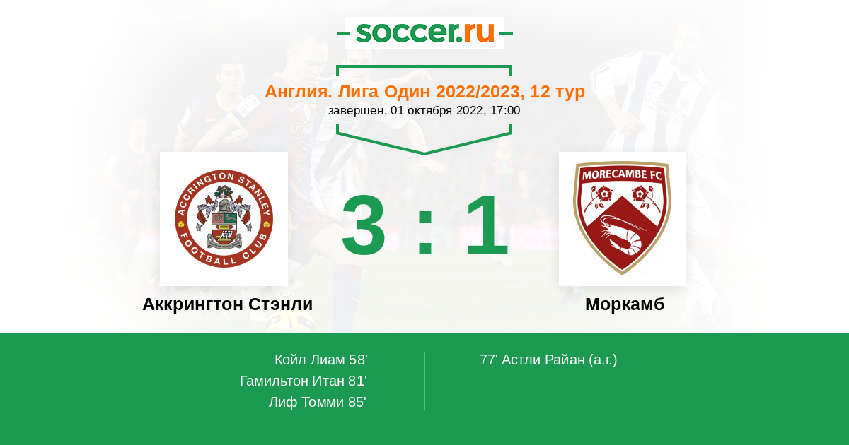 Аккрингтон Стэнли - Моркамб: обзор матча 1 октября 2022