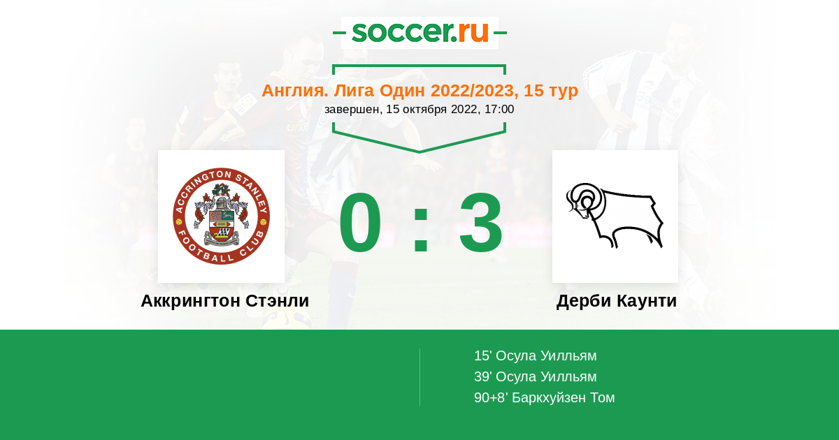 Аккрингтон Стэнли - Дерби Каунти: обзор матча 15 октября 2022