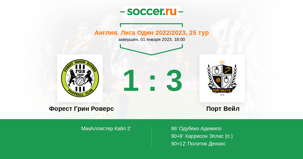 Форест Грин Роверс - Порт Вейл: обзор матча 1 января 2023