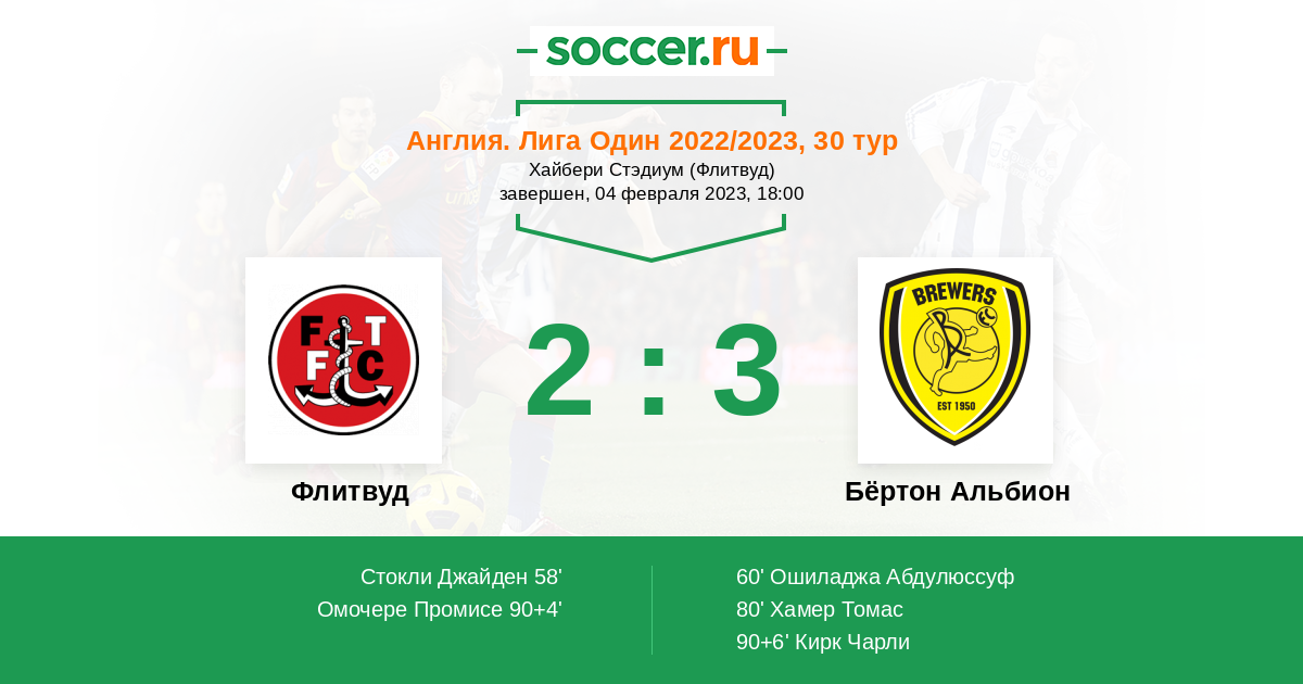 Флитвуд - Бёртон Альбион: обзор матча 4 февраля 2023