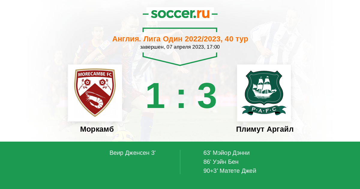 Моркамб - Плимут Аргайл: обзор матча 7 апреля 2023