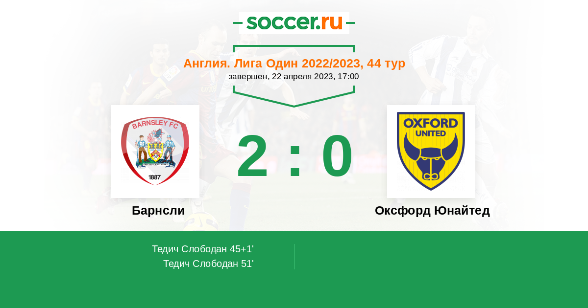 Барнсли - Оксфорд Юнайтед: обзор матча 22 апреля 2023