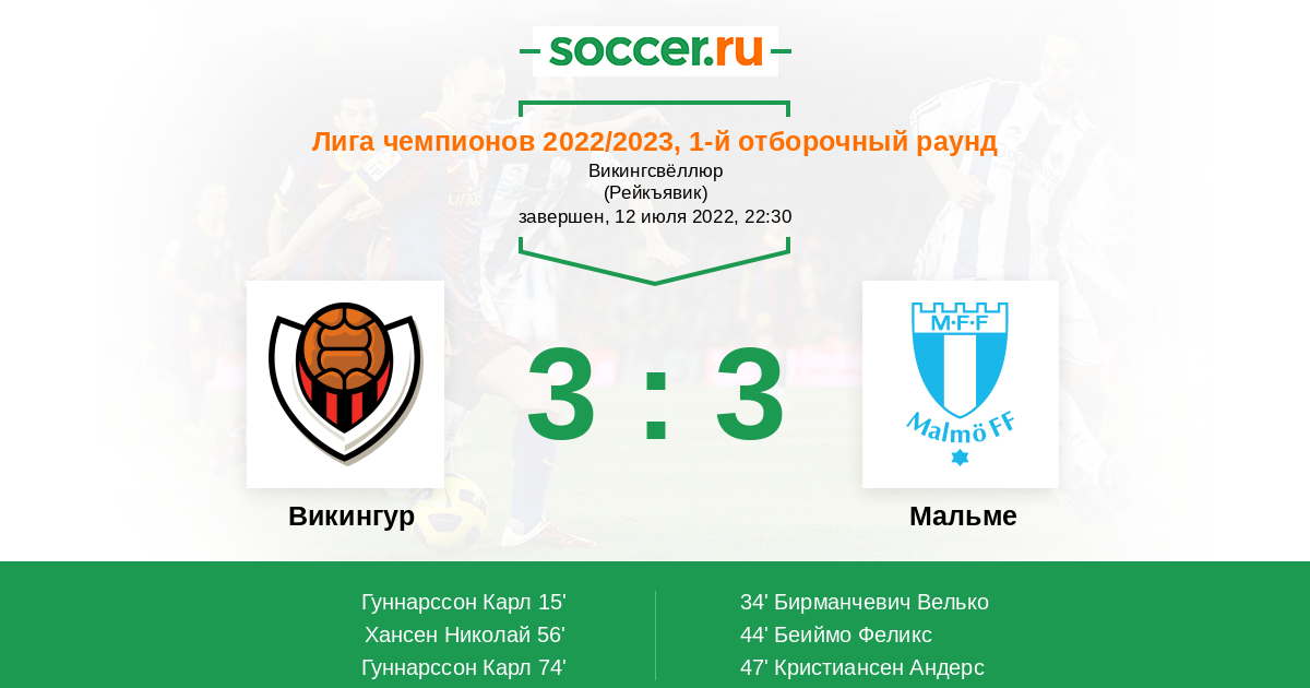 Дома Викингур повторит успех Мальмё в первой игре. Из ТОП-8 Чемпионата Швеции у Мальме самая худшая разница мячей. По итогу, думаю, дожмут и пройдут всё-таки фавориты-шведы — у них длиннее скамейка.