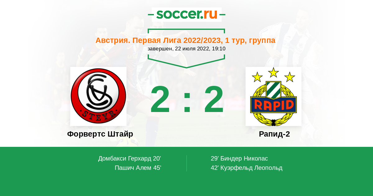 Форвертс Штайр - Рапид-2: обзор матча 22 июля 2022