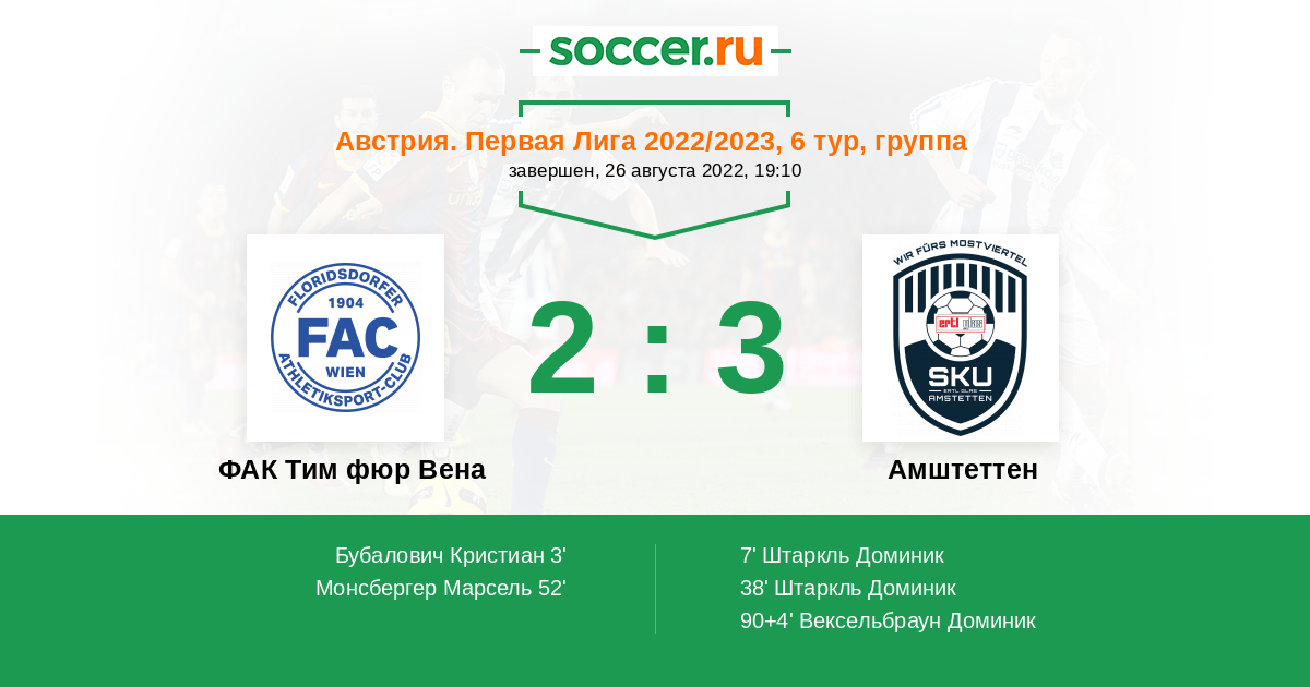 ФАК Тим фюр Вена - Амштеттен: обзор матча 26 августа 2022
